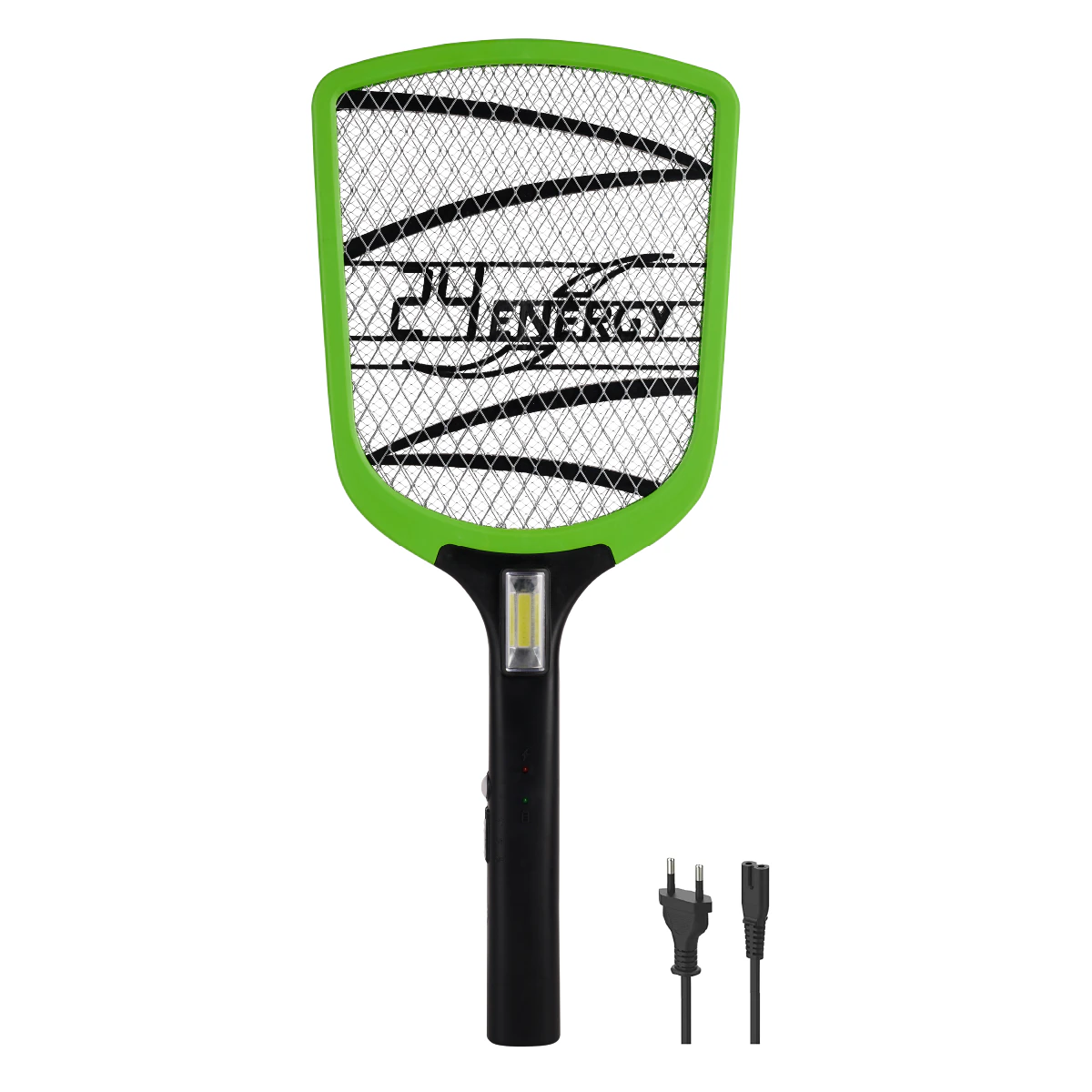 24ENERGY EN-19MS Mosquito Bat with 500mAh Sealed Lead Acid battery, rechargeable C7 cable, inbuilt COB light, and wide mesh design for extended coverage and reliable mosquito protection.